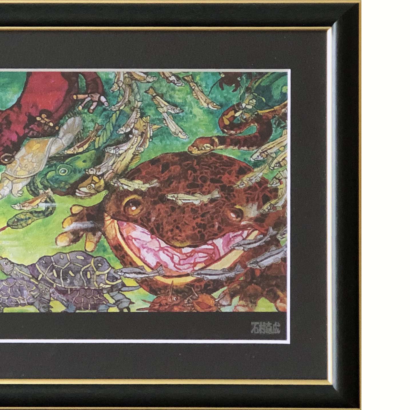 海にすむたくさんの生き物たちを、ダイナミックで色鮮やかに表現。5枚のポストカードをセットした、こだわりのオリジナルのフレームです。